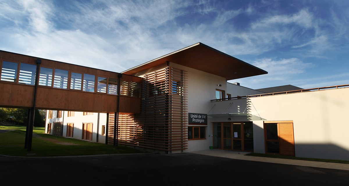 54 lits répartis en chambres individuelles avec salle d’eau privative, espaces d’accompagnement, locaux de soins, locaux logistiques.