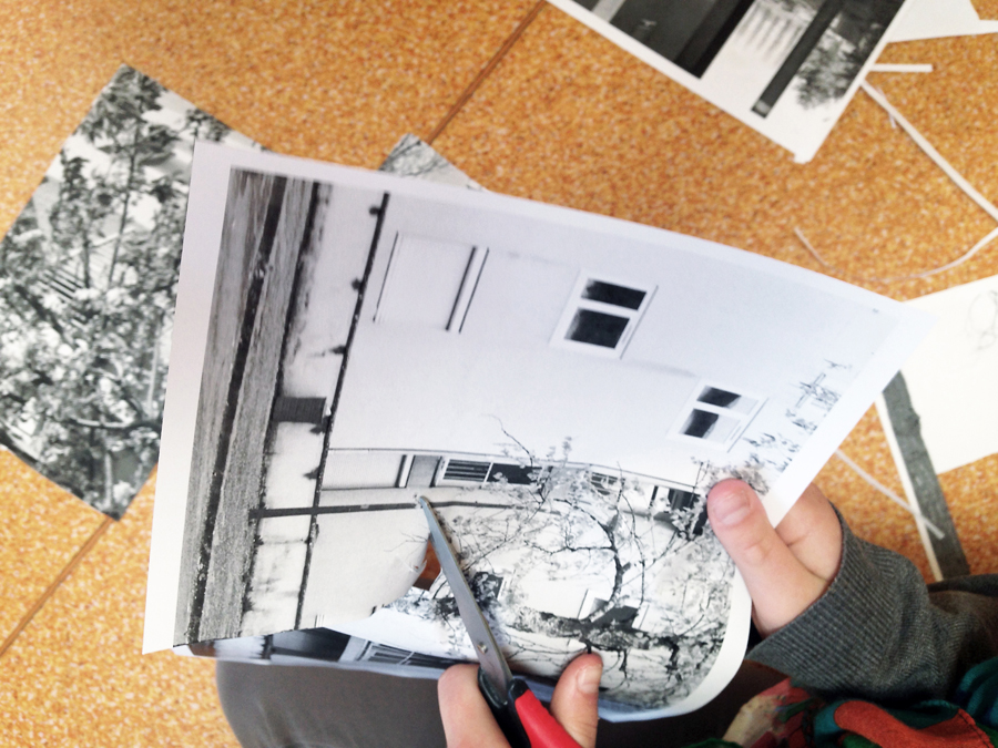 Dans un second temps, les enfants ont été amenés à affuter leur regard à l’aide d’un viseur en papier (créés par eux en début de séance) et à partir à la recherche de détails intéressants pris ensuite en photo.