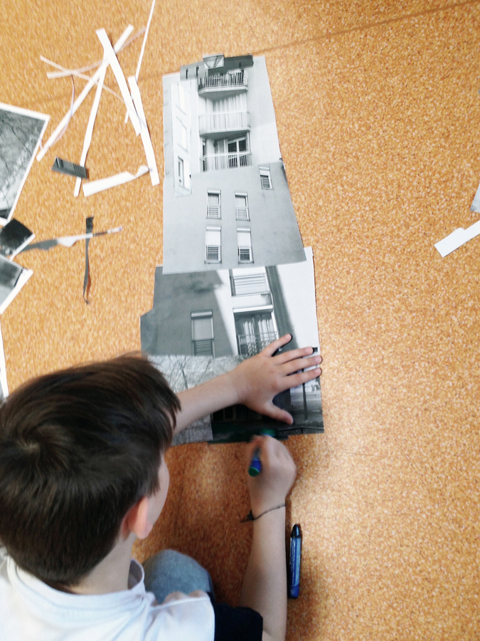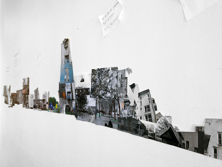 Enfin, la dernière étape a consisté à réaliser une fresque collective en recomposant la ville à partir des différentes images récoltées, en ajoutant des éléments architecturaux, en assemblant des vues différentes, en recréant le profil d’un bâtiment et en rajoutant des indications au dessin.